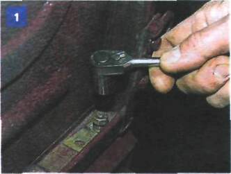 Головкой «на 13» отворачиваем гайку болта заднего крепления колпака к левому борту,...