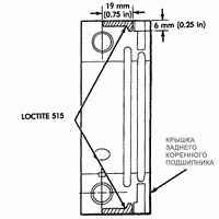 5.22. Установка коленчатого вала и проверка зазоров коренных подшипников Если в ходе проведения капитального ремонта двигателя была проведена проточка шатунных и коренных шеек коленчатого вала до стандартного ремонтного размера (с принижением 0,254 мм), выбор сменных подшипников не должен вызвать затруднений. Следует просто заказать стандартный же комплект вкладышей ремонтного размера. Однако, следует помнить, что даже в случае выполнения проточки вала и замены подшипников перед тем как приступить к сборке двигателя необходимо произвести проверку зазоров в подшипниках. (см. п. "Независимо от использованного способа...").