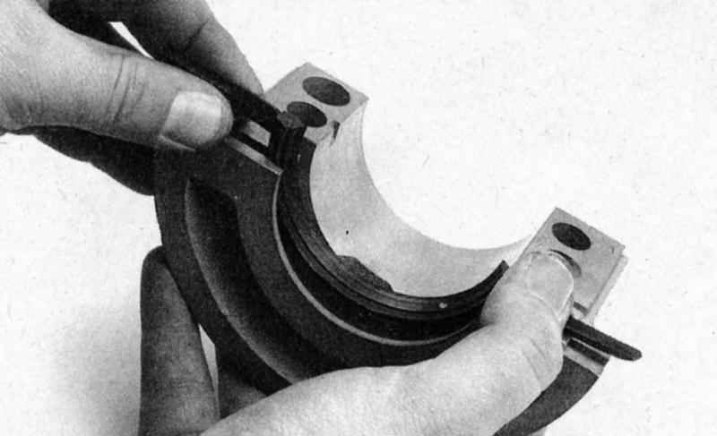 Ни в коем случае не застукивайте вкладыш в постель молотком и старайтесь не оцарапать подшипниковые поверхности и не оставить на них задиров. Смазка на данном этапе производиться не должна.