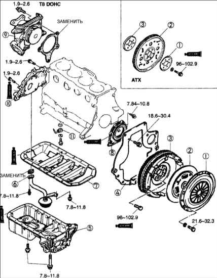Моменты затяжки: FE DOHC: 69–73,0 Н•м Т8 DOHC: 47–50 Н•м |
