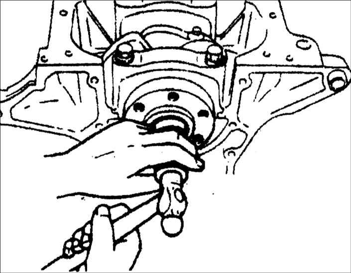 Специальным приспособлением ОК410 111 012 снимите с торца коленчатого вала