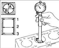 2. Измерьте диаметры цилиндров в диаметрально противоположных направлениях,