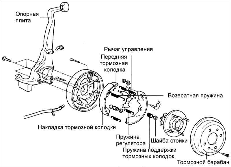 5. После установки тормозного барабана несколько раз затяните рычаг стояночного тормоза.