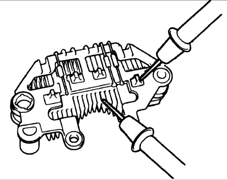 1. Проверьте проводимость между положительными полюсами выпрямителя и зажимом