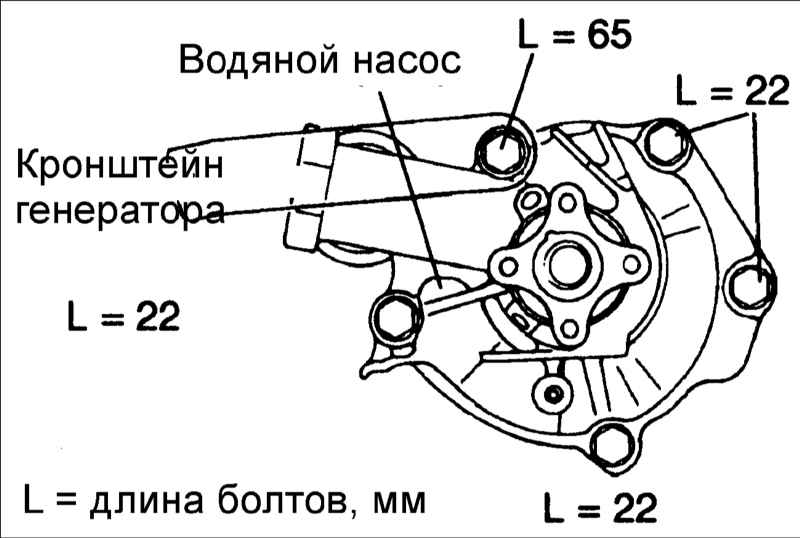 4. Выверните болты крепления водяного насоса и затем снимите опору