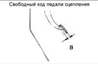 1. Измерьте расстояние от передней поверхности педали до коврового покрытия. Рукой нажмите педаль сцепления до появления ощутимого сопротивления и измерьте величину свободного хода.