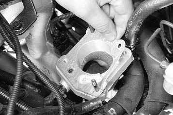 10. Выверните два болта, отверните две гайки крепления дроссельного узла к впускной трубе...