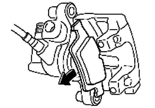 Потяните колодку тормозного диска (внутренняя сторона) в направлении стрелки, чтобы вынуть ее из суппорта, как показано на рисунке 6.52.