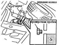 - Уровень масла должен находиться на высоте заливного отверстия. При необходимости долить трансмиссионное масло.