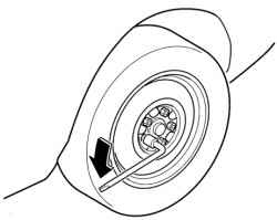 1.4.1.4. Демонтаж неисправного колеса1. Если на колеса автомобиля установлены декоративные колпаки, снимите колпак с помощью колесного ключа. Для этого нажмите на край колпака заостренным концом рукоятки колесного ключа.