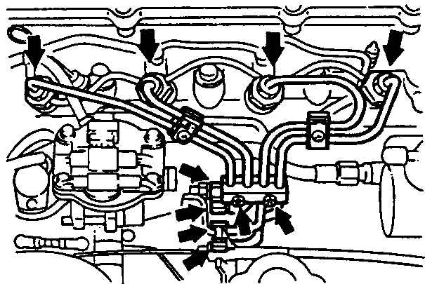 на холостом ходу и по очереди освободите накидные гайки трубопровода впрыска.