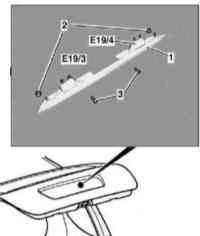 - Отсоедините электропроводку фонарей подсветки номерного знака (Е19/3 и Е19/4).