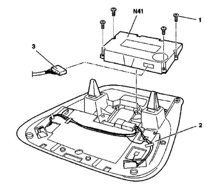 - Выверните крепежные винты (1) и снимите модуль путевого компьютера (N41) с консольной панели (2).