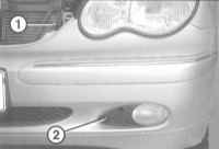 11. Откройте капот и выверните 2 винта (1) справа и слева у фар.