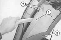зажима (2). (3) – верхняя облицовка заднего окна.