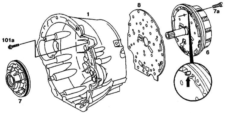 4. Отсоедините промежуточную пластину (8) от корпуса гидротрансформатора