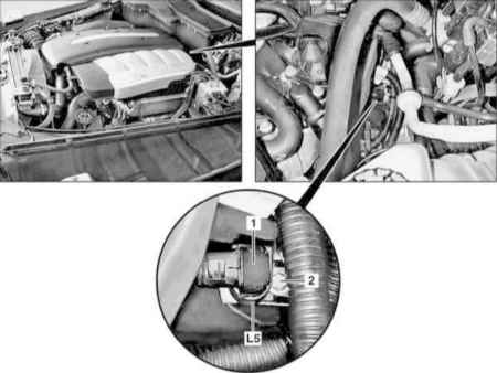 - Выверните крепежный болт (2) и снимите датчик CKP (L5).