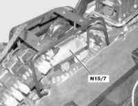 - Отсоедините электропроводку, отдайте четыре крепежных гайки и снимите модуль управления раздаточной коробки (N15/7).