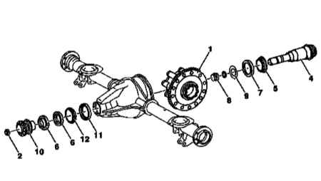 Детали установки ведущей шестерни главной передачи заднего моста