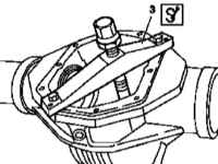 - Установите на место сборку дифференциала с ведомой шестерней (1) (см. Раздел Снятие и установка сборок межколесных дифференциалов с ведомыми шестернями главных передач).