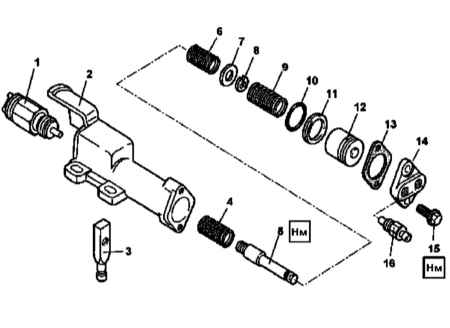 - Выверните шток (5) из рычага (3) и высвободите оба элемента, а также пружину датчика-выключателя (4) из кожуха цилиндра (2).