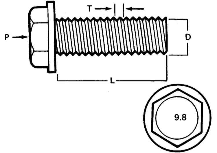 Размеры/маркировка класса прочности метрических болтов