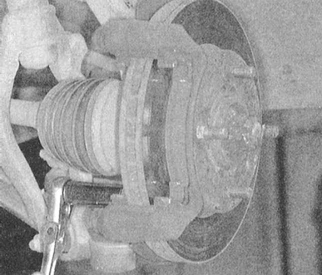 5. Снимите суппорт тормозного механизма и, не отсоединяя тормозной