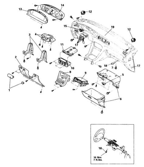 19. Выверните болты крепления панели приборов, промаркируйте и отсоедините