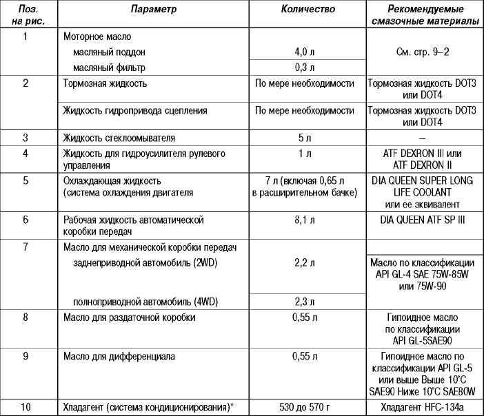 Заправочные емкости, смазочные материалы и эксплуатационные жидкости