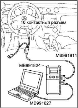 Подсоедините специальный инструмент (жгут тестовых проводов MB991658) к выводам разъема самого клапана.