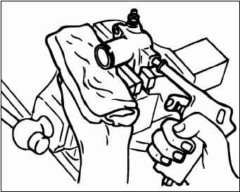 Оберните рабочий цилиндр ветошью, чтобы не допустить вылет поршня при снятии и избежать травмирования обслуживающего персонала.