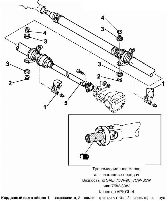 При установке деталей обратите внимание на операцию по установке карданного вала в сборе.
