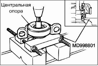 С помощью съемника снимите промежуточную опору в сборе с промежуточного карданного вала.