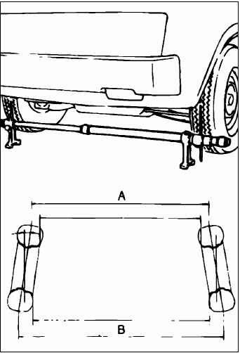 При помощи специальной линейки, измерьте величину схождения управляемых колес. Схождение = В – А