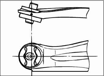 При снятии продольного рычага, сместите немного вперед (к передней части автомобиля) лапу подъемника, чтобы она не мешала снятию рычага.