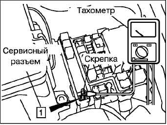 Вставьте канцелярскую скрепку в разъем датчика частоты вращения двигателя со стороны жгута проводов, и подсоедините внешний высокоточный тахометр.
