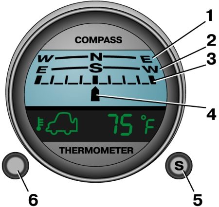 Электронный компас показывает направление движения автомобиля, когда ключ в замке зажигания повернут в положение АСС или ON.