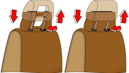 Подголовники для переднего и заднего сидений различаются по форме. При установке подголовников не перепутайте подголовники передних и задних сидений. Подголовники передних сидений выше и толще.