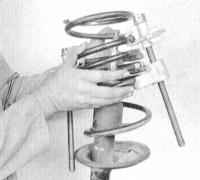 с амортизатора сжатую винтовую пружину и перенесите ее в безопасное
