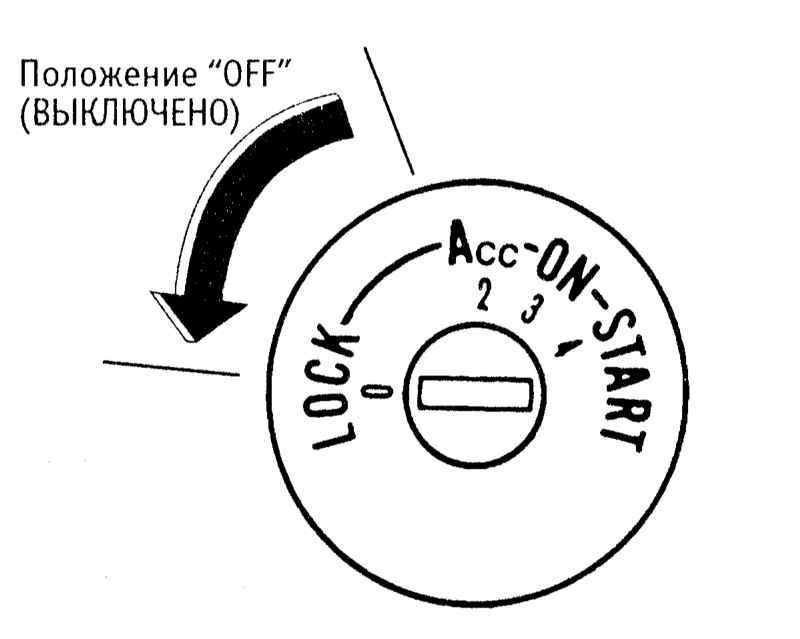 OFF — Данное положение не является фиксированным (оно не обозначено на замке) и находится между положениями 0 и 2. В данном положении рулевое колесо не заблокировано.