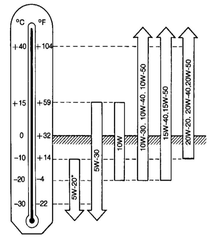 Масло для бензиновых двигателей, по спецификациям: API SG, SH, или SJ ILSAC GF-I или GF-II ACEA 96 A2