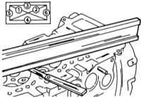 Снимите рычаги клапанов, компенсационные шайбы, направляющие рычагов и гидравлические компенсаторы согласно иллюстрации ниже.