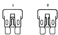 по расплавленной токовой нити (1 – исправный предохранитель). |