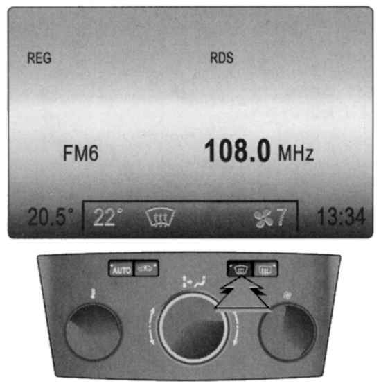 Нажмите клавишу включения режима удаления влаги и инея со стекол. На дисплее отобразится соответствующий символ, а в клавише загорится сигнализатор ( рис. 1.131).