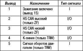 5.4.7. Таблица 5.7 Разводка контактов – разъем жгута проводов с 3 выводами (ZF)