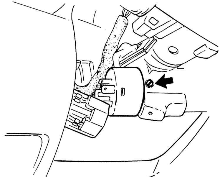 - Прижмите небольшой отверткой или проволокой стопорную пружину. Выньте цилиндр замка с ключом зажигания.