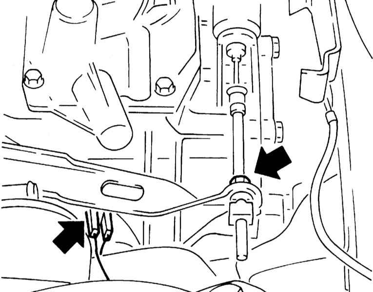 - Разъедините разъем выключателя фонаря заднего хода (стрелка слева на иллюстрации).