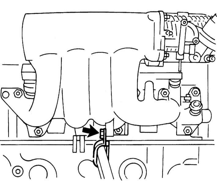 - Пометьте подающий и возвратный топливные шланги, чтобы не перепутать их местами при сборке. Пережмите шланги зажимами. Отсоедините держатель топливных шлангов у впускного трубопровода и снимите их. Вытекающее топливо соберите ветошью.