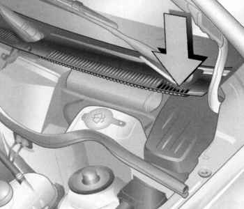 Воздухозаборные отверстия в моторном отделении слева и справа снаружи перед ветровым стеклом должны быть свободны для поступления воздуха, при необходимости удалите листву, грязь или снег.