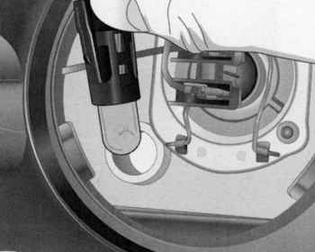 Снимите колпак фары, для чего нажмите фиксатор и вытяните колпак вниз.